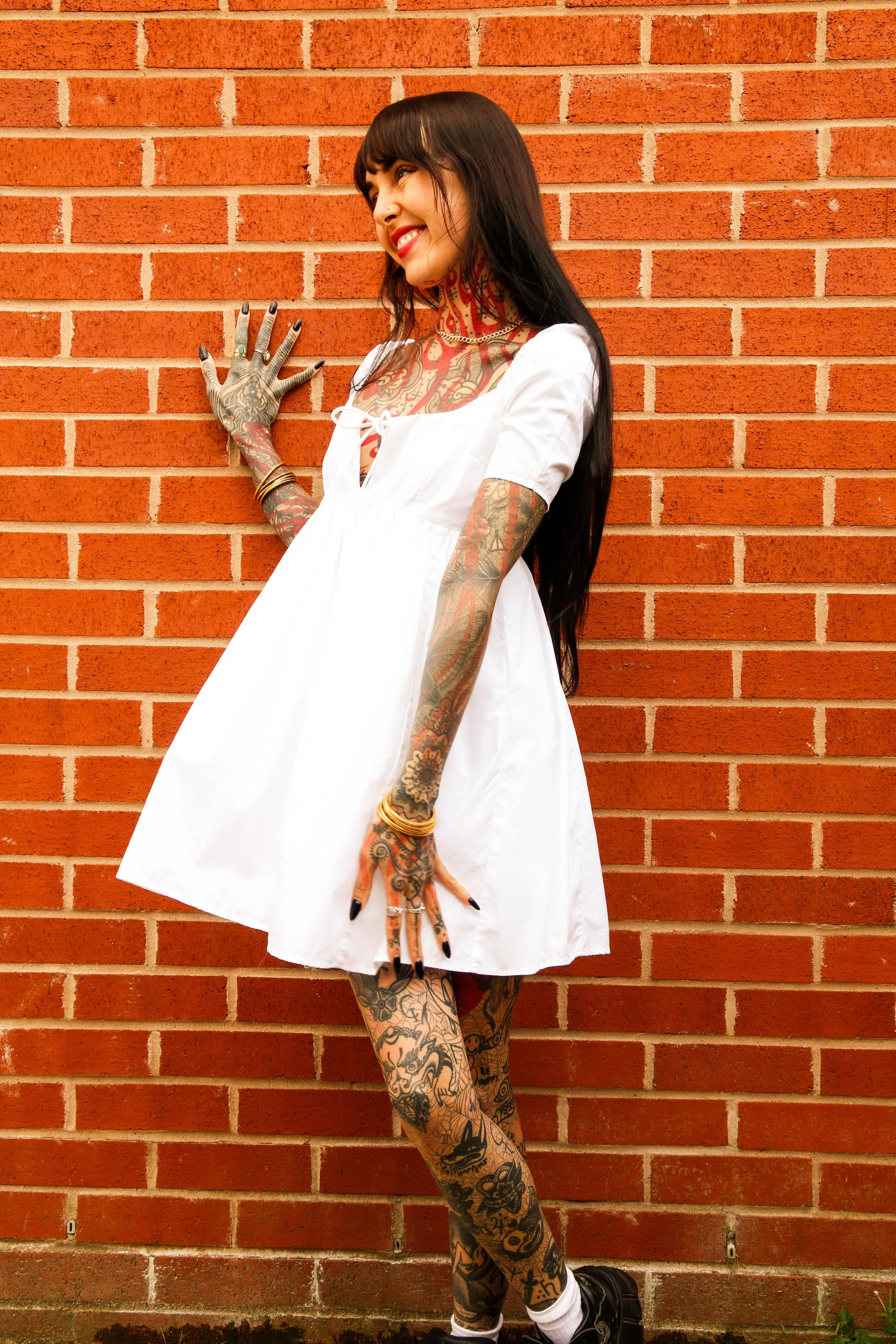 This dress moves with you, offering a floaty, angelic feel that’s equally at home barefoot on grass or paired with boots and a jacket.