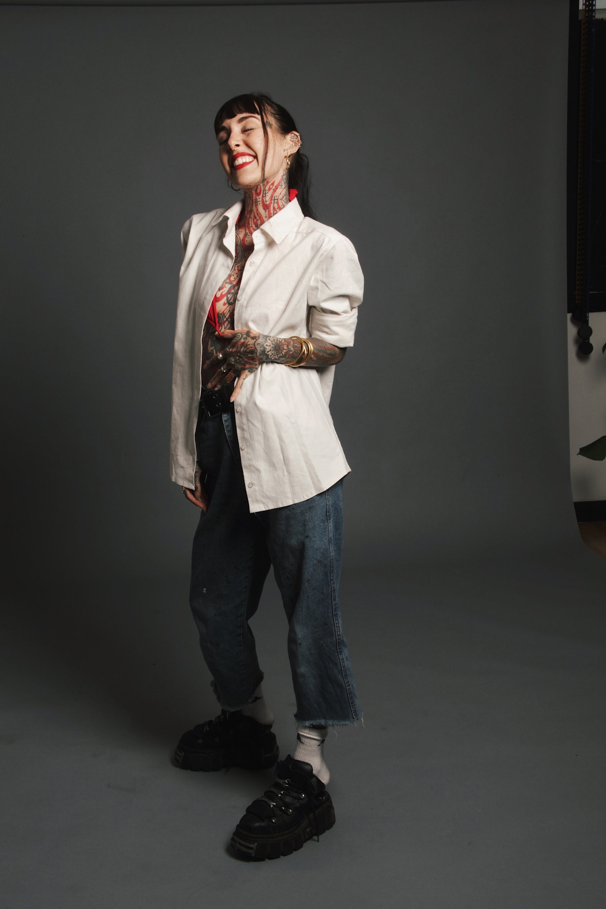 Designed with a modern yet classic fit, this shirt features a button-down front and a soft collar that maintains its shape while offering a relaxed look. The sleeves can be rolled up for a casual vibe or worn down for a more polished appearance, adapting effortlessly to any occasion.