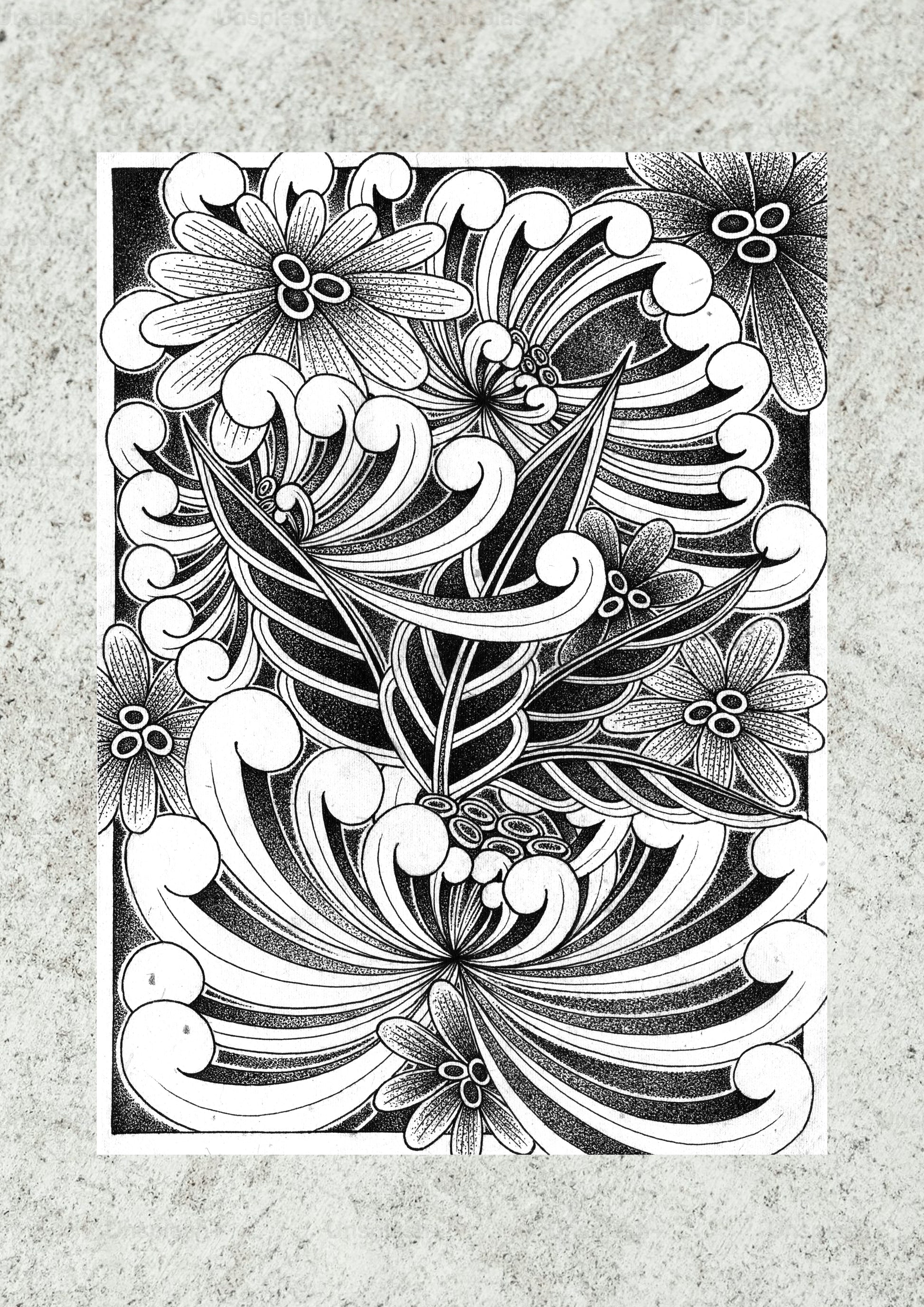 A striking black and white floral composition, Jungle Bouquet by Hannah Pixie captures the untamed beauty of nature with intricate detail. This A1-sized print showcases an elegant arrangement of wild blossoms and foliage, weaving together organic shapes with a bold, graphic aesthetic. The monochrome palette enhances the depth and contrast, highlighting the delicate yet powerful presence of each petal and leaf. Perfect for adding a touch of botanical elegance to any space, this artwork embodies the raw and timeless essence of the natural world.