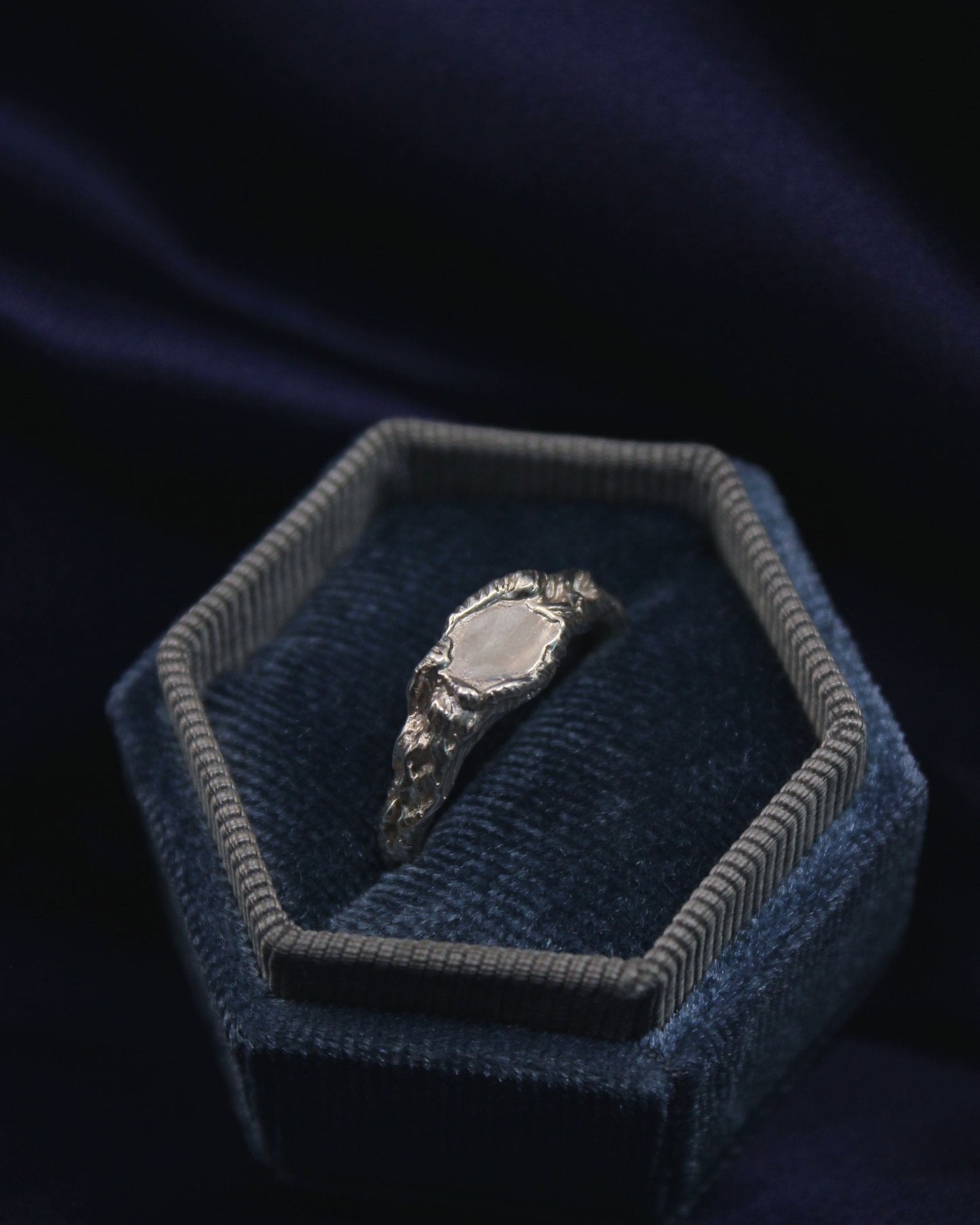 Inspired by a loch visited on travels to the Scottish Highlands - a perfectly still rippled surface, surrounded by rugged landscape and reflecting the sky. This ring is an easy to wear, everyday piece which would also work wonderfully as an alternative ceremonial piece.