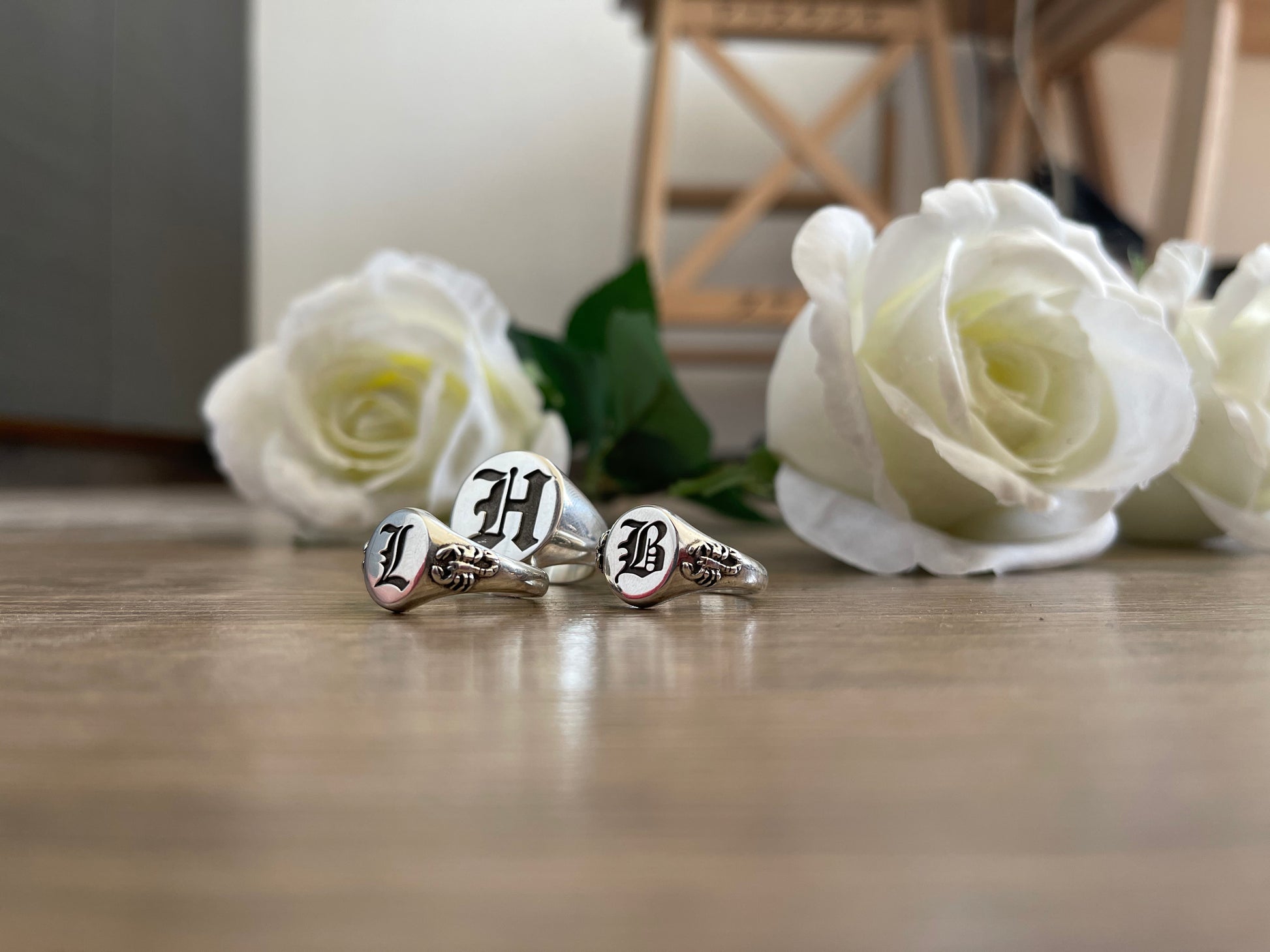 Old English Initial Ring handmade from: 925 Sterling Silver.