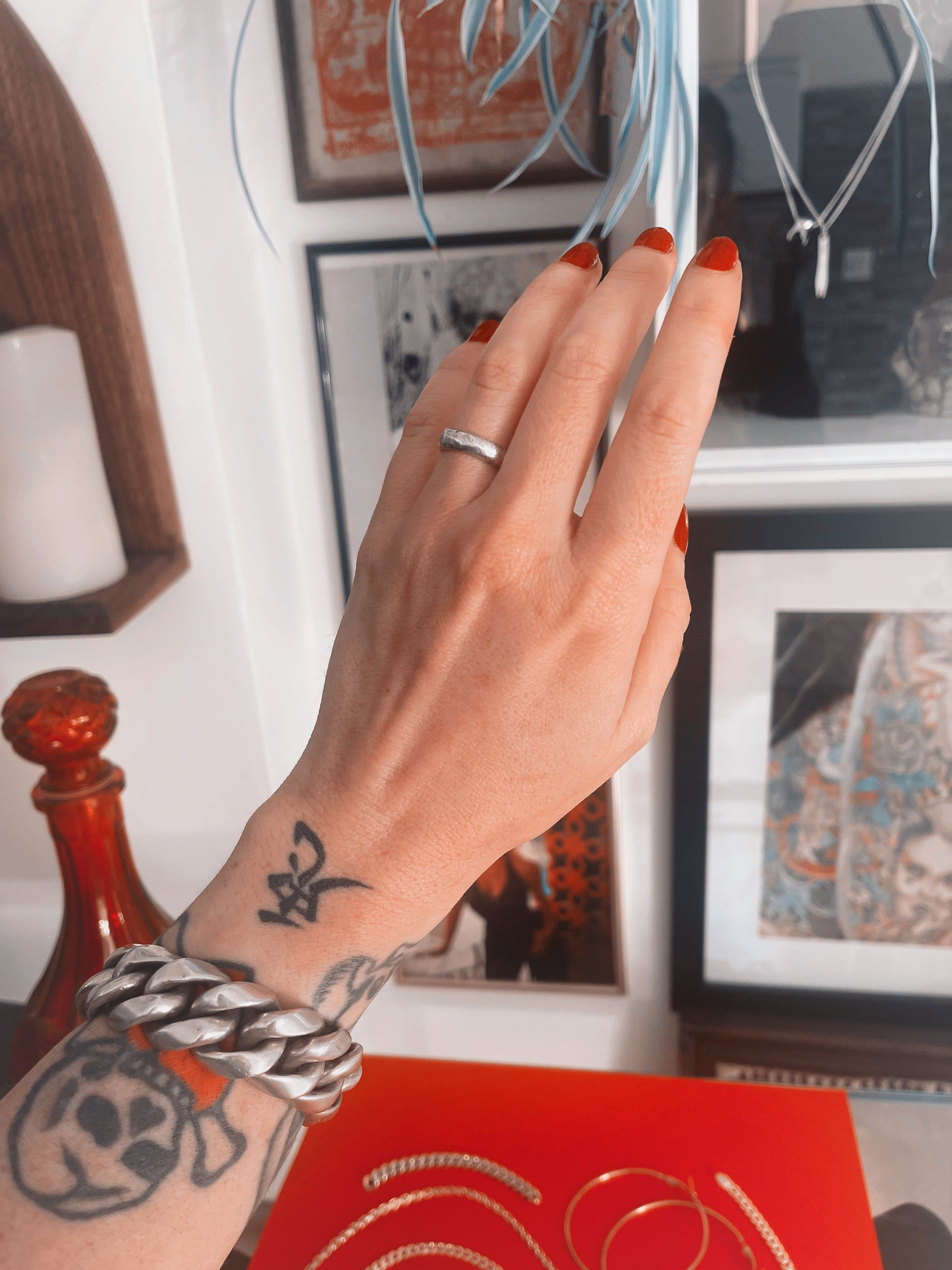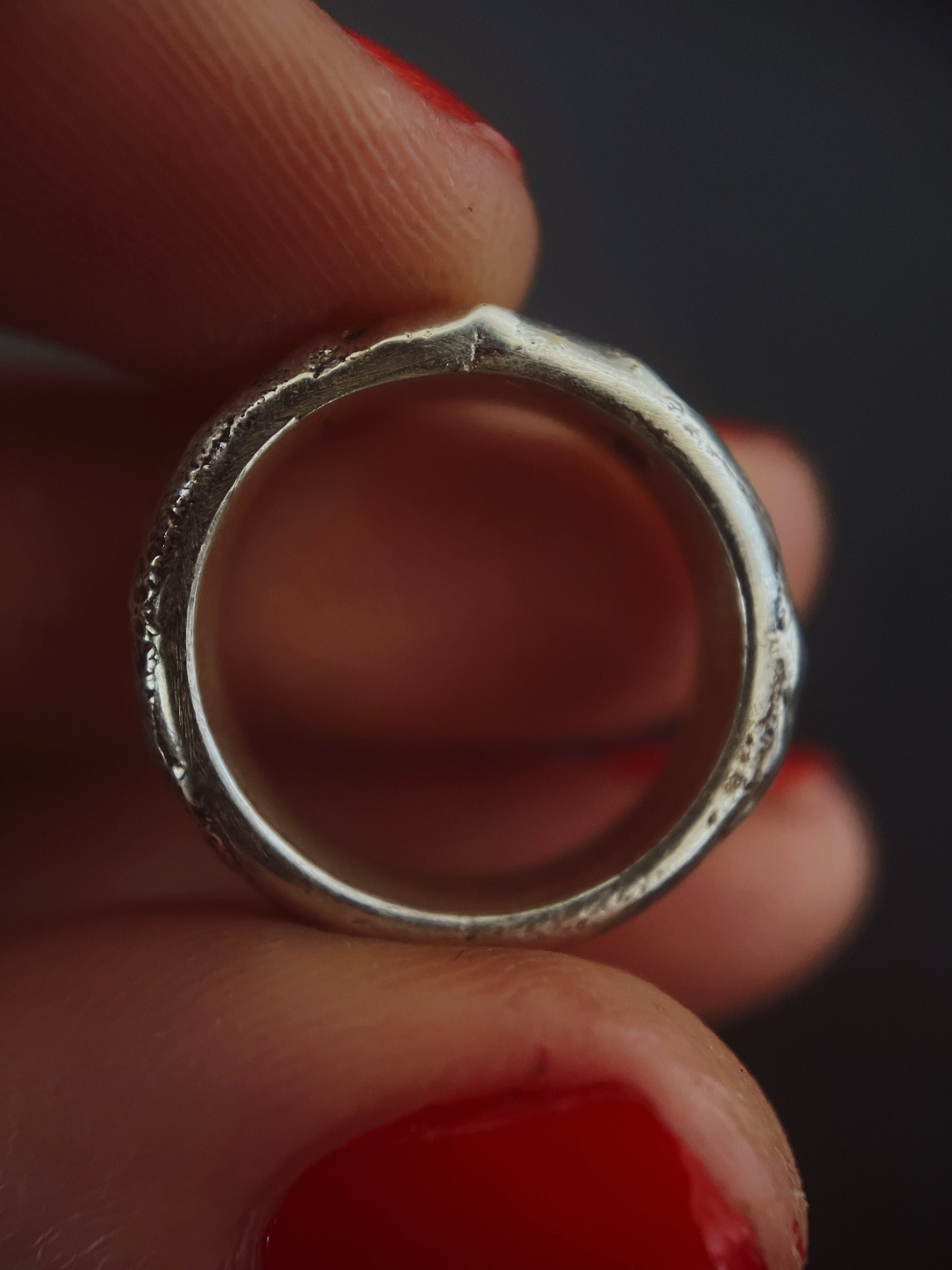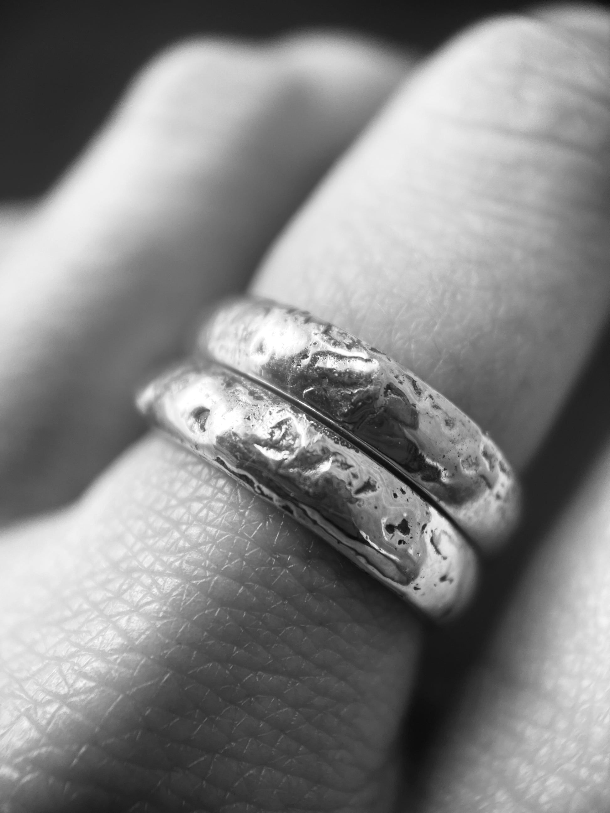 The jeweller behind this creation is Stacey Hare, adding a personal touch to each piece. For inquiries about obtaining this style in gold, please reach out to us at info@electric-sun-store.com, and we will gladly provide you with the relevant quotes. Elevate your style with the "Raw Elegance" Band – a fusion of craftsmanship, versatility, and sophistication.