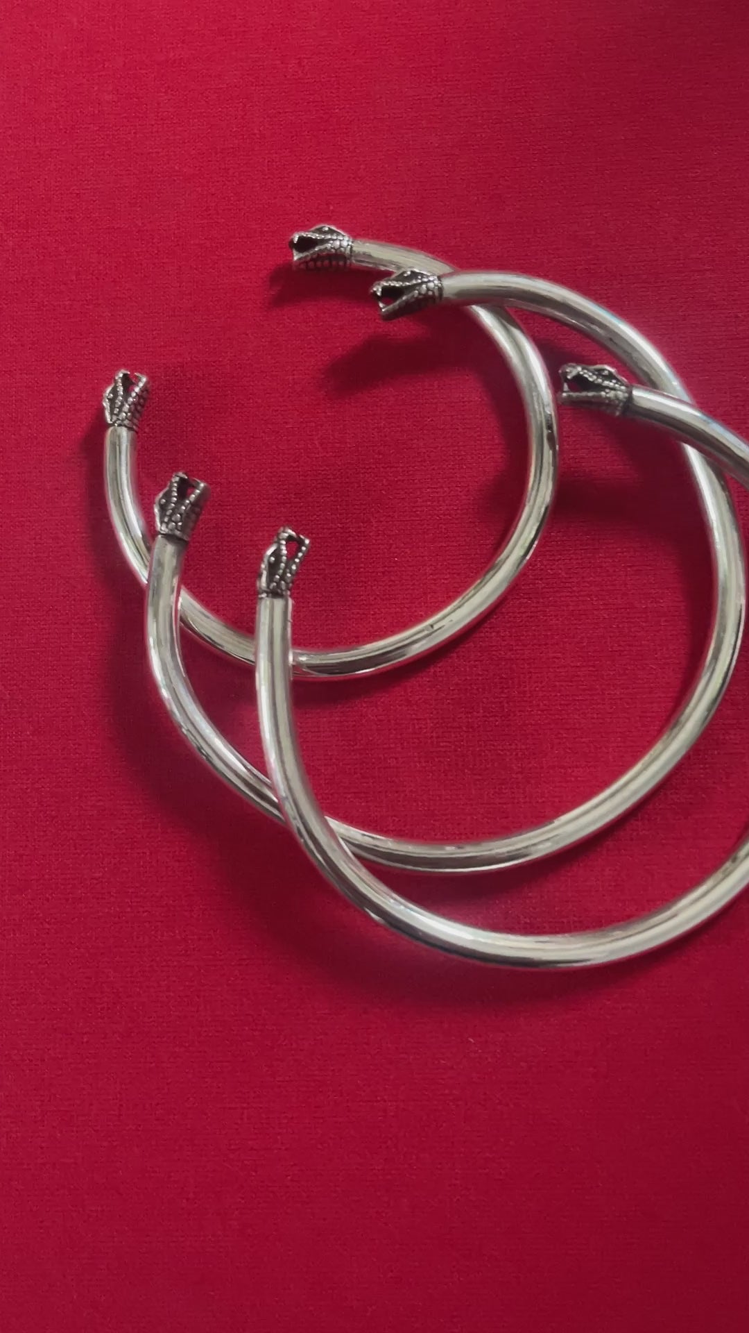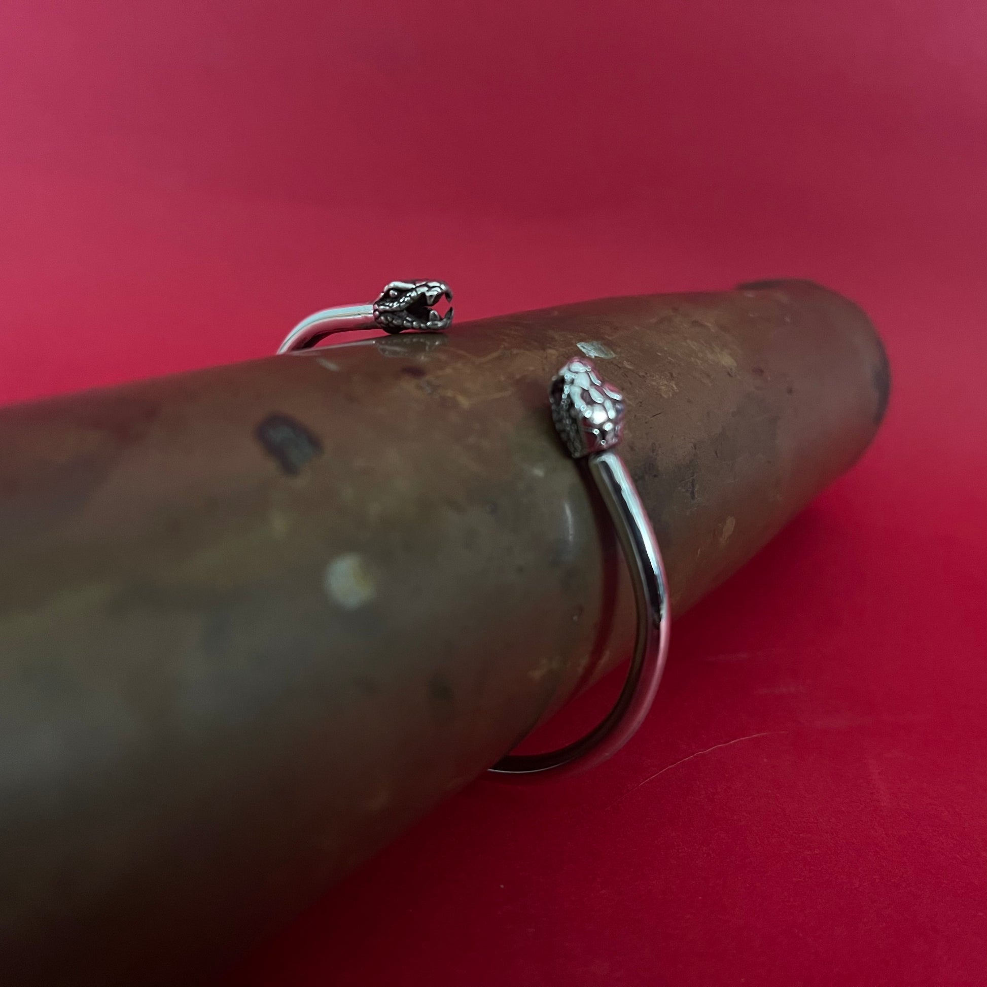 The intricate design features finely detailed snake heads catch the light, creating a mesmerising effect as the cuff coils with seamless fluidity. The thick, solid sterling silver ensures durability while maintaining a comfortable feel.