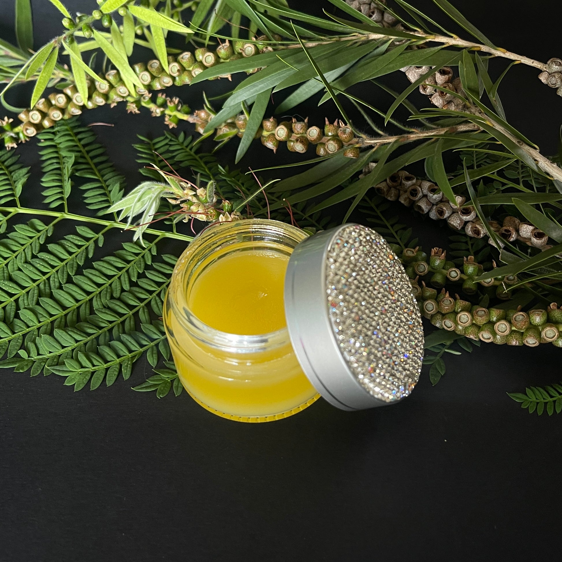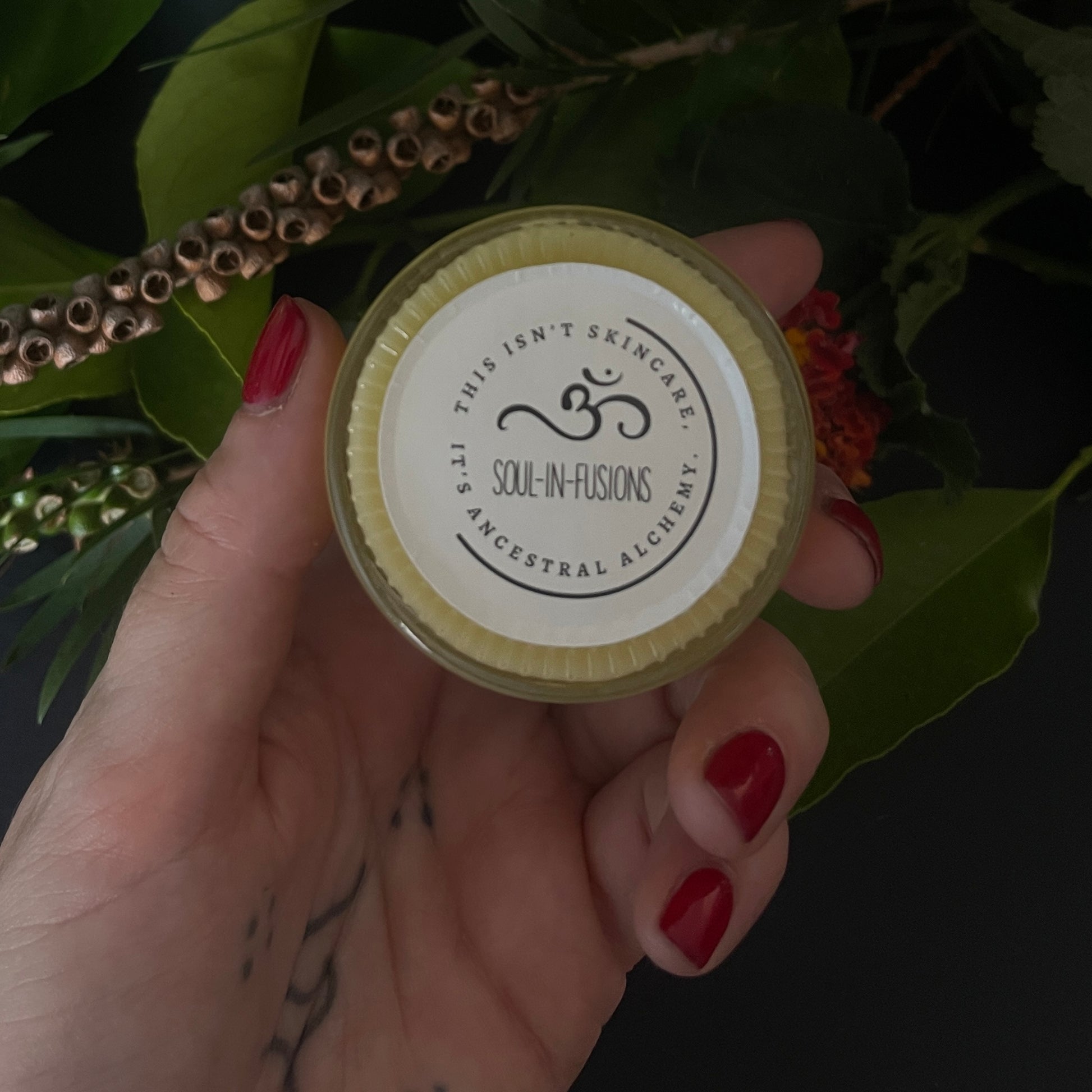 This calming facial balm is designed to ease tension, tighten pores, and enhance your skin’s innate glow. Sandalwood grounds the spirit while working to firm and refine; citrus oils brighten and energise; geranium and clary sage harmonise hormones and skin tone. Together, they create a sacred veil of renewal — clarity, calm, and youthfulness in one divine touch.