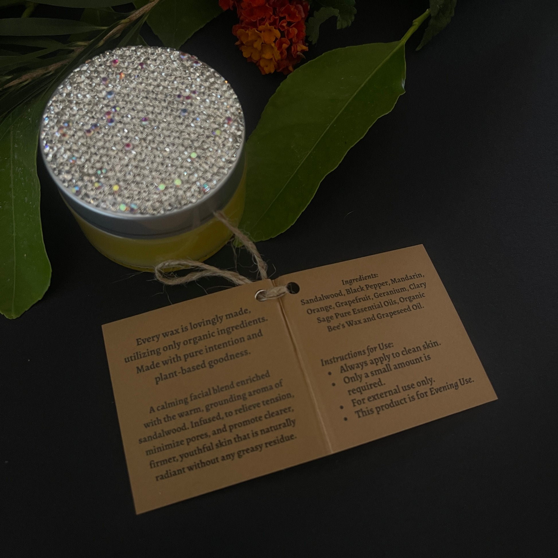 Infused with sacred botanicals and elemental beauty, this gentle blend harnesses the grounding power of Sandalwood, the bright clarity of Mandarin, Orange, and Grapefruit, and the balancing floral whispers of Geranium and Clary Sage. Rounded with Black Pepper for subtle warmth, it is carried in a base of Organic Beeswax and Grapeseed Oil — light, nourishing, and never greasy.