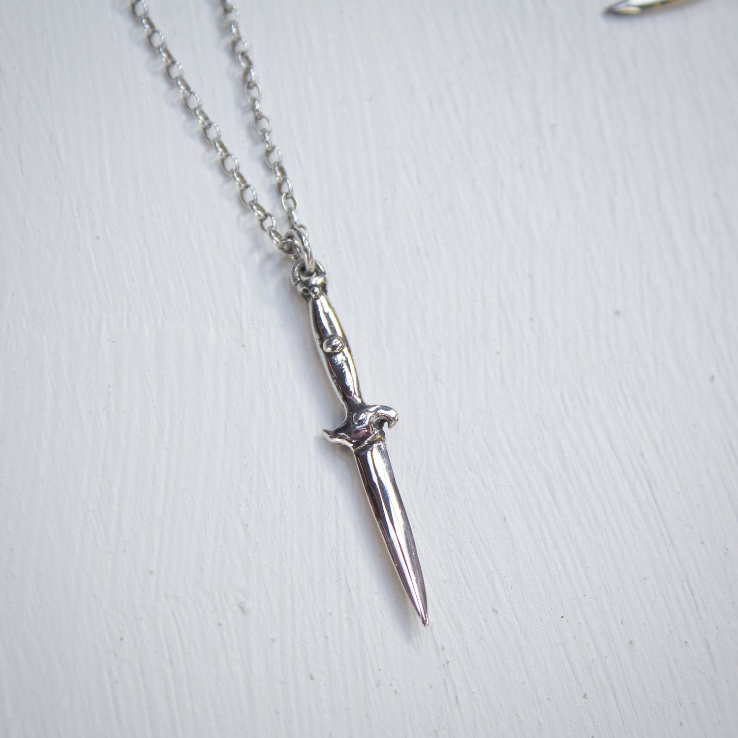 This tiny switchblade pendant, crafted in solid sterling silver and plated in gold, offers daily protection. Boasting a 50cm sterling silver belcher chain, it is handcrafted in Wellington, New Zealand (Aotearoa) by Heavy Metals Jewellery.